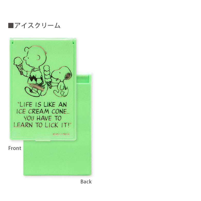 名称 ピーナッツ 箔押し仕様 折りたたみミラー(S) サイズ 約 H9cm×W6cm 材質 スチロール樹脂(本体)、ガラス(ミラー) ラインナップ スヌーピー(SNMR2259) / スヌーピー&ウッドストック(SNMR2260)アイスクリーム(SNMR2261) 注意点 お使いのモニターによって、商品の色味が若干異なる場合がございます。