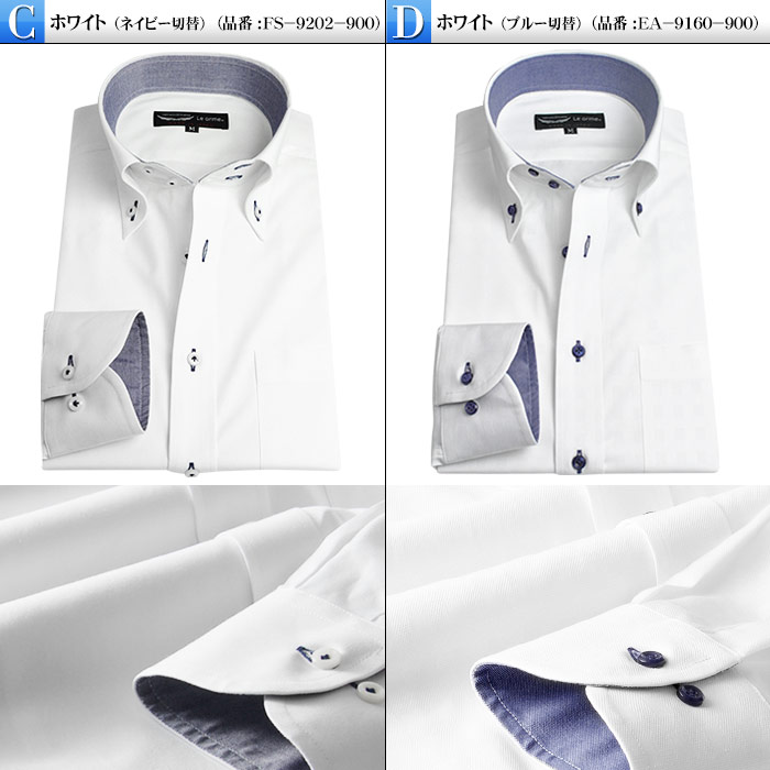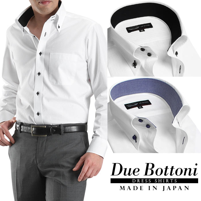 ドレスシャツ メンズ 日本製 綿100% ドゥエボットーニ ボタンダウン オセロ切替 【Le orme】ワイシャツ 長袖 ボタンダウン ホワイト
