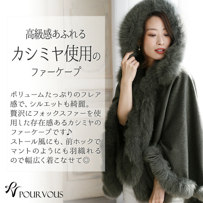 アウター ケープ ファー カシミヤ ブルーフォックス フォックスファー ケープ ブラック ベージュ 黒 フード付きケープ グレー レディース ロング ドレス カジュアル セレブ ミセス 上品 冬 服装 新作20代30代40代50代 成人式 春ワンピース 激安 ファッション 同窓会 韓国